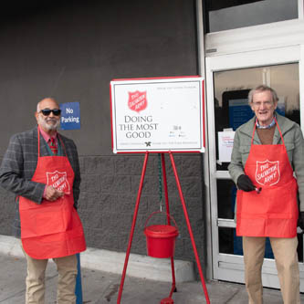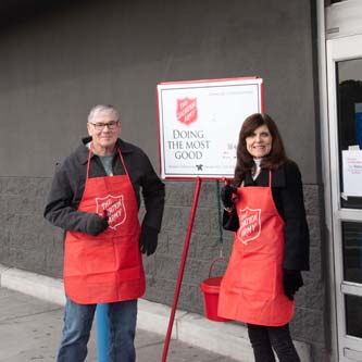 Our annual day of ringing the bell for The Salvation Army was on December 21, the Wednesday before Christmas. Shown here are Suki Pierce and Bill Ziglar.